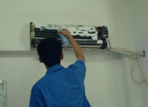 | 裕华空调维修师傅给裕华用户上门维修清洗空调。 |